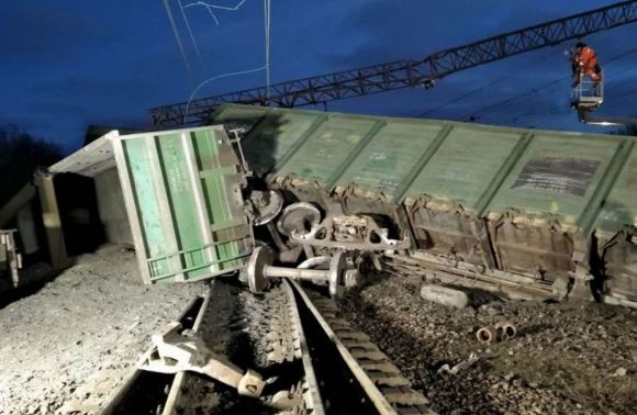 Під Дніпром 6 лютого вантажний потяг зійшов з рейок, деякі вагони перекинулися і пошкодили залізничне полотно.
