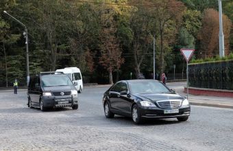 Хідники по обидві сторони військового навчального закладу та біля воріт, через які повинен заїжджати автомобіль гаранта, патрулювали співробітники служби безпеки. Просили перехожих, що йшли по тротуару біля академії, обходити навчальний заклад через парк.