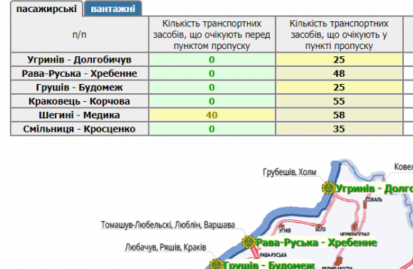 246 автомобілі скупчилися в прикордонних пунктах пропуску на Львівщині, а ще 40 – перед пунктах пропуску «Шегині».