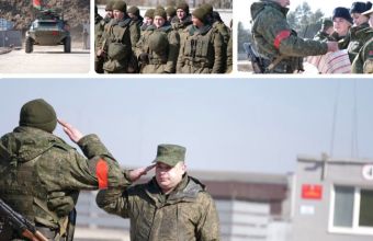 Чомусь на техніці червоні квадрати, а на рукавах і ногах військовослужбовців червоні пов'язки.