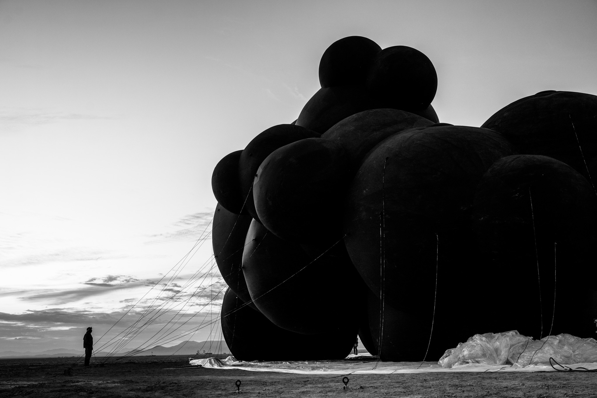 "Сьогодні був перший і останній день Чорної Хмаринки (української роботи, яка візуалізує все ближчу загрозу третьої світової війни) на Burning Man. Мене розбудили десь після 17:30… Тут бувають різкі зміни погоди і сильні вітри. Але цей був сильніший і раптовіший, ніж зазвичай. Значно сильніший. Частина команди буквально літала в повітрі, намагаючись урятувати щойно побудований табір. Але буря розносила його, як хотіла… Попри те, що на папері і за розрахунками Чорна Хмаринка мала витримати навіть таку бурю, сталося інакше. Вона тримала вітер перші 15 хвилин, а потім Її розірвало посередині, буря залетіла в неї і знищила остаточно…