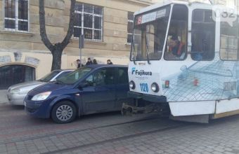 Чотири трамваї №8 зупинилися у Львові біля Академії мистецтв