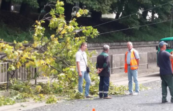Дерево впало біля будівлі обласного управління ДСНС на вулиці Підвальній у Львові та обірвало трамвайні дроти.