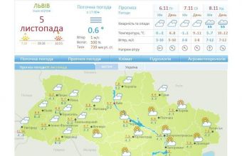 «Львівський регіональний центр з гідрометеорології повідомив, що у другій половині дня 5 листопада, із збереженням вночі та в першій половині дня 6 листопада, буде туман, видимістю 200-500 метрів. Завтра – без опадів. Вітер – південно-східний, 3-8 метрів за секунду. Температура повітря вночі становитиме 1-3° морозу, вдень – 7-9° тепла.