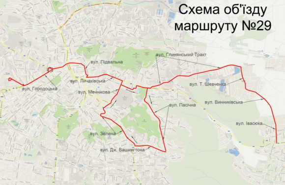 Автобус №29 (Залізничний вокзал – Винники) в напрямку Винників об’їжджатиме перекриту ділянку Личаківської вулицями Некрасова і Черемшини, а у зворотному напрямку – вулицями Пасічною, Вашингтона, Зеленій, Мечникова.