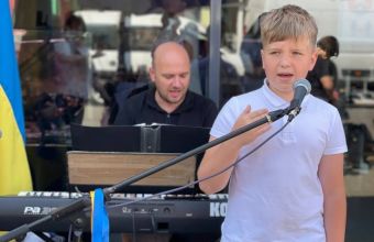 Вже понад рік Юрій разом з батьком їздить по області та збирає кошти на допомогу українським військовим. Хлопчик співає, а батько акомпанує йому на синтезаторі.