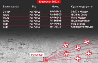 За нашою інформацією, всі літаки щось привозять до Білорусіі, але що саме - поки що невідомо. Не можна виключати, що може відбуватися як доставка техніки, так і ротація/підвезення мобілізованих.