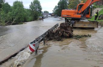 На ділянці автомобільної дороги Східниця – Урич розчистили вціліле дорожнє покриття від ґрунту, гілля та стовбурів дерев. Ремонт триває.