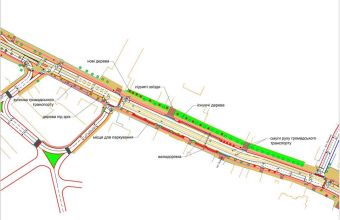На всій ділянці планується чотири смуги руху. На під'їзді до Єрошенка це три смуги в напрямку центру і одна від центру. Крайня права – до центру, середня – на поворот на Єрошенка та ліва – для громадського транспорту, який їхатиме без конфлікту з потоком авто що повертають.