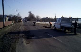 Оперативний ремонт траси Львів-Тернопіль у селі Куровичі відбувається за допомогою застиглого асфальту і сокири.