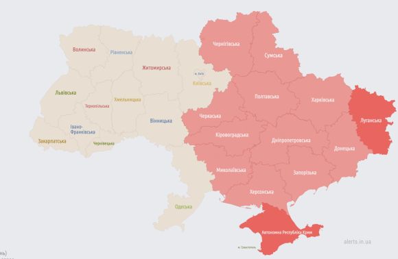 Оголошені повітряні тривоги у 12-ти областях України - з 13.05 до 13.08.