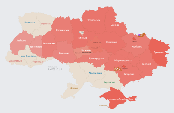 Першу повітряну тривогу оголосили о 23.46, а припинили її о 00.16.