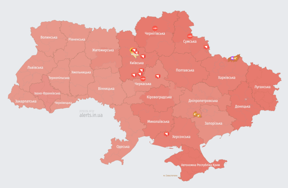 Триває чергова ворожа комбінована атака, яка може пройти кількома хвилями. Ракети прилітають з різних напрямів.