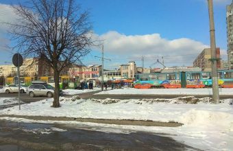 Трамваї зупинилися через ДТП на колії біля «Арсена» на проспекті Червоної калини.