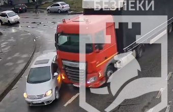 ДТП на вулиці Стрийській: легковик потрапив у сліпу зону вантажівки (відео)