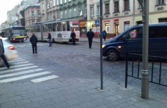 «Городоцька, 99. ДТП. Рух ускладнено, трамваї стоять. Поліція присутня», – повідомили сьогодні, 13 жовтня, на сторінці громадської організації «Варта 1» в інтернет-мережі «Facebook», де також опублікували фото з місця ДТП.