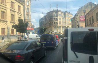 ДТП біля оперного театру на перехресті вулиці Городоцької й проспекту Чорновола змусила зупинитися транспорт на ділянці вулиці Городоцької між церквою святої Анни й «Магнусом».