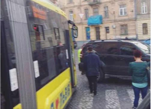 Трамваї простоюють на площі Івана Франка у Львові через зіткнення одного з них з автомобілем.