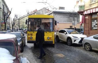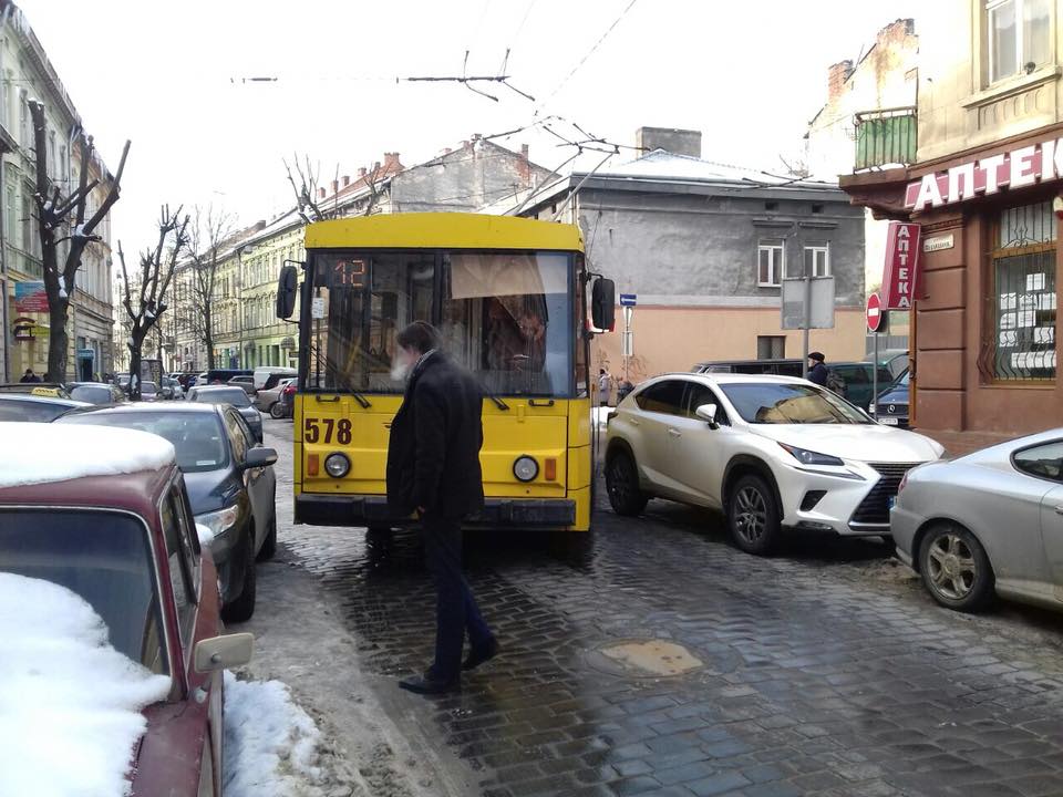 Автомобілі заблокували у Львові рух тролейбусів