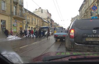 Трамваї зупинилися через ДТП на з'їзді зі Сихівського мосту й на вулиці Городоцькій.