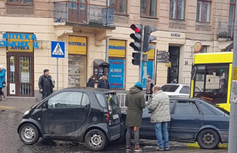 Трамваї стоять через ДТП на перетині вулиць Івана Франка й Стрийської у Львові.