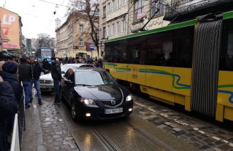 Трамваї стоять на вулиці Дорошенка у Львові через ДТП на колії.