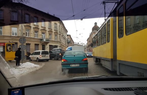 Трамваї зупинилися у Львові через ДТП на площі Івана Франка.