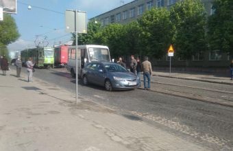 Трамваї стоять через ДТП у напрямку центра Львова на вулиці Шевченка.