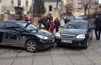 У громадській організації «Варта 1» повідомили в п’ятницю: «На вулиці Хмельницького – ДТП, трамваї стоять, водій зриває наклейки «ЯндексТахі» з автомобіля».