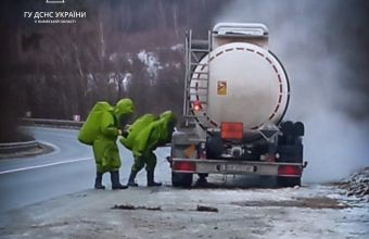 Фахівці з радіаційно-хімічного та біологічного захисту намагаються обвалувати цистерну на трасі Львів-Івано-Франківськ