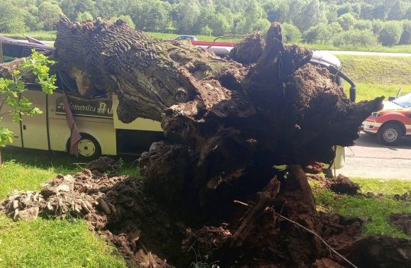 На околиці села Нагуєвичі, при вході до комплексу «Стежка Івана Франка», сталася ДТП з автобусом та аварійним деревом.