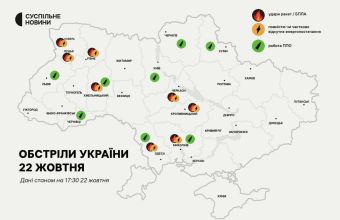 Карта ударів по інфраструктурі України і збитих ракет 22 жовтня
