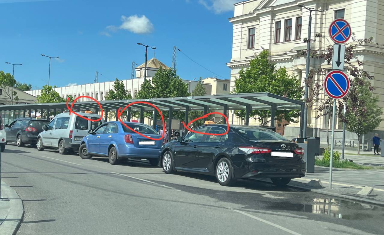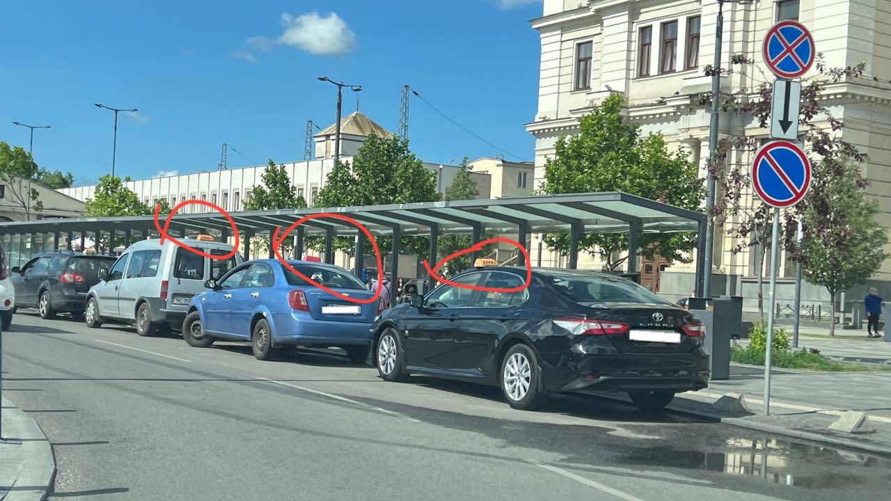 "Двірцева 1. Вимагаю в балансоутримувача дороги звернутись до відповідних органів (поліція/укртрансбезпека) для дотримання водіями ПДР на цій ділянці, оскільки на постійній основі порушується вимога знаку 3.35 і здійснюється довготривала стоянка легкових авто. Місце для посадки-висадки якраз там де стоять дані псевдотаксі. Також прошу залучити інспекцію з парування", - поскаржився львів'янин.