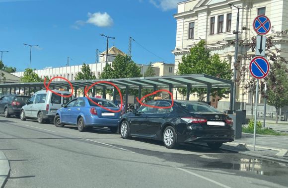 "Двірцева 1. Вимагаю в балансоутримувача дороги звернутись до відповідних органів (поліція/укртрансбезпека) для дотримання водіями ПДР на цій ділянці, оскільки на постійній основі порушується вимога знаку 3.35 і здійснюється довготривала стоянка легкових авто. Місце для посадки-висадки якраз там де стоять дані псевдотаксі. Також прошу залучити інспекцію з парування", - поскаржився львів'янин.