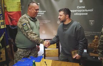 Командир 103 бригади Курко подарував президенту Зеленському шеврон і емблему