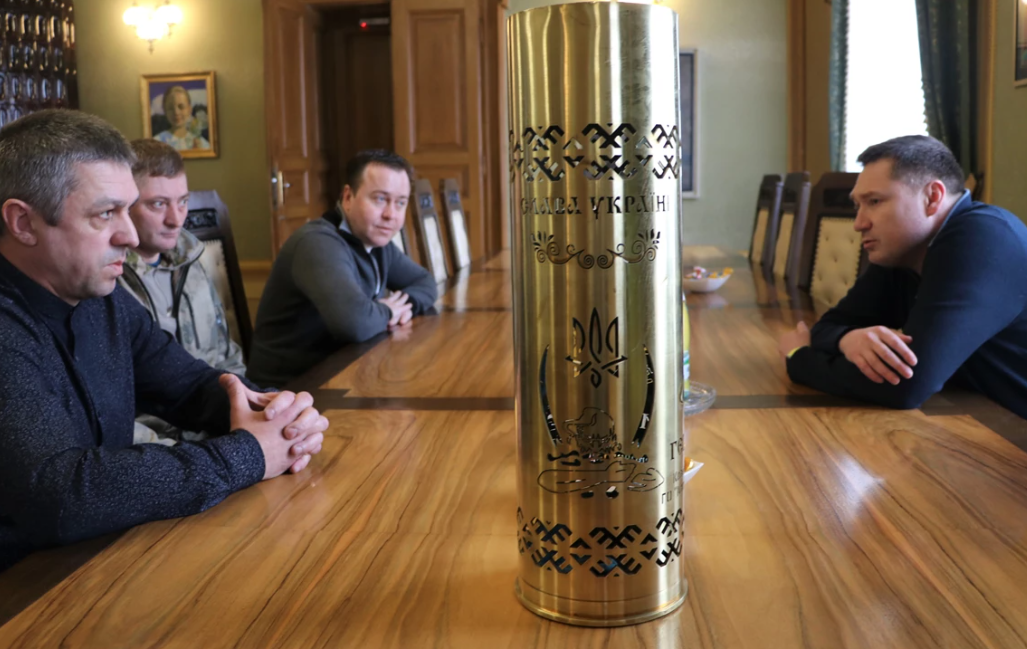 Сьогодні, 10 квітня, начальник Львівської ОВА Максим Козицький отримав від громадської організації «Автомайдан Червоноград» гільзу від артилерійського снаряда. Гільзу, калібром 155 міліметрів, декорували. Її передали військові з 24 окремої механізованої бригади імені короля Данила, які зараз обороняють Бахмут.
