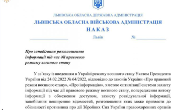 Начальник Львівської обласної військової адміністрації Максим Козицький підписав наказ про запобігання розголошенню інформації під час дії правового режиму воєнного стану.