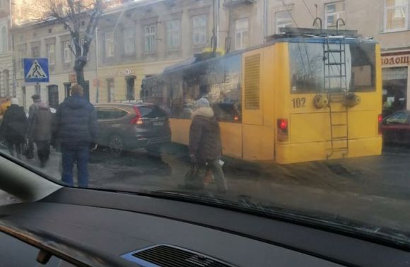 Безвідповідально припаркований легковий автомобіль заблокував рух транспорту вулицею Федьковича у Львові.