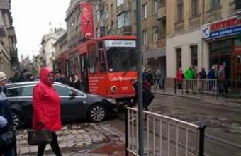 На вулиці Дорошенка у Львові зіткнулися трамвай та автомобіль.