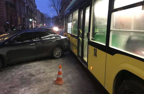 Тролейбус не може проїхати вулицею Січових Стрільців через порушення водієм автомобіля правил паркування.