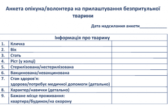 Про це повідомили сьогодні, 3 травня, в прес-службі Львівської міськради, де також зазначили: «Для того, щоб надати інформацію про тварину, що потребує прилаштування, слід надіслати анкету (у вкладеному файлі) на скриньку lkplev@gmail.com».