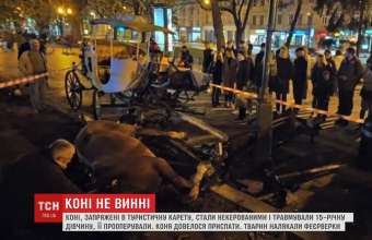 Про це повідомила в понеділок, 4 листопада, «Телевізійна служба новин» каналу «1+1», де також розповіли: «Лікарі прооперували дівчину, яку травмували перелякані коні у Львові. У дівчини відкритий перелом ноги, а от травмовану кобилу довелося приспати. Ветеринар діагностував у неї переломи двох ніг, щоб тварина не мучилася, їй зробили ін'єкцію».