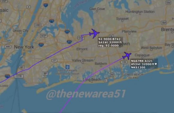 AIR FORCE ONE and Spirit Airlines flt NK1300 got too close over Long Island, New York for Air Traffic Control and get’s yelled at including getting told “GET OFF THE IPAD”! ????