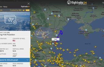 Також узбережжя Румунії проводить розвідку американський літак Boeing P-8A Poseidon без позивного (no callsign). Це патрульний протичовновий літак, розроблений за програмою багатоцільового морського літака. Призначений для виявлення та знищення підводних човнів противника в районах патрулювання, розвідки, участі у протикорабельних та рятувальних операціях.