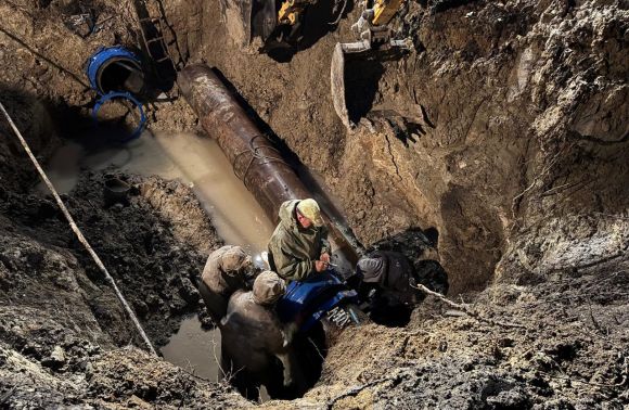 Пошкоджену ділянку вже відкрито та обчищено. Далі — вирізання аварійного фрагмента, встановлення нової труби і поступове наповнення магістралі", - йдеться в повідомленні.