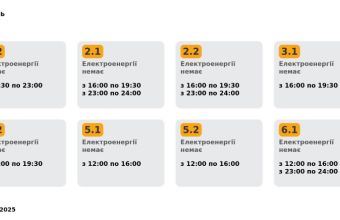 Зокрема, групам 1.1, 1.2, 3.2 та 4.1 вимикатимуть світло з 19:30 до 23:00.