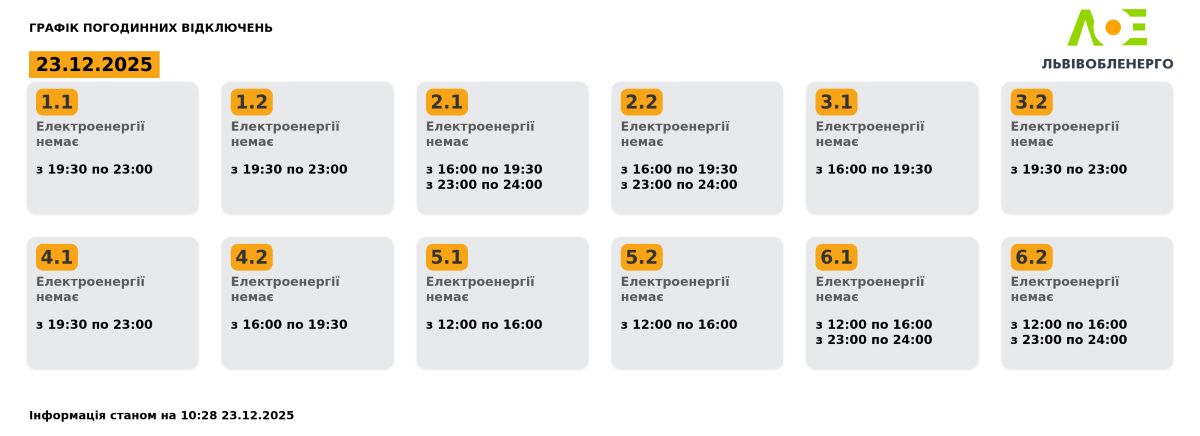 Інформація станом на 10:28 23 грудня 2025 року.