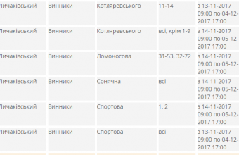 У вівторок, 28 листопада, «Львівобленерго» знеструмило до 15:00 для безпечного проведення ремонтних робіт у Сихівському районі вулиці Козловського, Рахівську, Ромашкову й Рядову та особняки на вулиціБережанській, до 16:00 – будинки №16 та №21 на вулиціКубанській у Галицькому районі, а до 17:00 – будинки №265, №267 та №269 на вулиціГородоцькій, №№1-43 на вулиціДубнівській, №№1-34 на вулиціПідгаєцькій, №4 та №6а на вулиці Патона, №7 та №9 на вулиці Ряшівській і №16 та №33 на вулиці Сигнівка в Залізничному районі, вулиці Кониського, Конопницької, Павлика, Павлова й Палія та будинки №№13-17 на вулиціЗеленій, №№8-30 на вулиці Костя Левицького й №201 на вулиціЛичаківській у Личаківському районі, №1а та №13 на вулиці Граб'янки у Сихівському районі, №№1-32 на вулиці Кобилиці, №№20-32 на вулиці Кобринської й №№21-61 (непарні) на вулиціМолдавській у Франківському районі та вулиці Лемківську, Перекопську, Тена й Точапського та будинки №№4-28 на вулиціГородницькій, №97 та №№106 на вулиціЗамарстинівській і №№1-14 на вулиці Квітовій у Шевченківському районі. Про це повідомили в прес-службі «Львівобленерго».