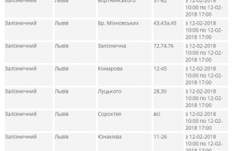 Зокрема, в Залізничному районі Львова обленерго знеструмило в понеділок, 12 лютого, до 17:00 для безпечного проведення ремонтних робіт вулицю Сорохтея й будинки №№31-62 на вулиці Бортнянського, №43, №43а та №45 на вулиці Братів Міхновських,