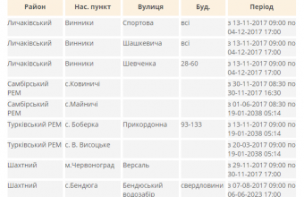 У четвер, 30 листопада, енергетики виконують ремонтні роботи у трьох районах Львова й у Брюховичах.